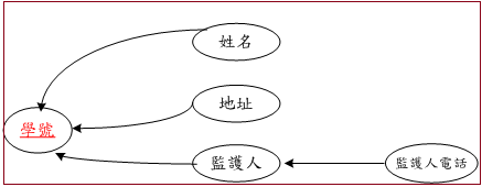 功能相依性關係到資料更新的異常,假設學生資料表為 {姓名、學號、地址、監護人、關係},其內容可能如下:
