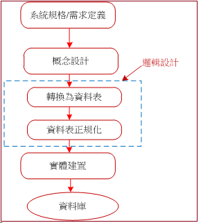 圖 9-1 資料庫邏輯設計步驟
