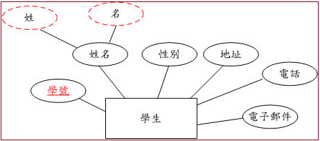 如果某些屬性可再細分其它小屬性的話,稱之衍生屬性,如圖 9-5 所示,我們再將姓名區分為『姓』與『名』兩屬性。